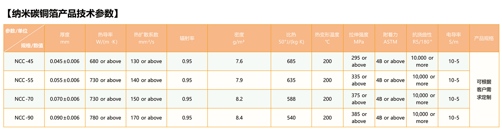 高导热率:纳米碳铜箔具有高导热率,能够有效地传递热量,提高散热效率。